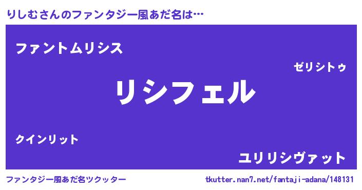 | 男性向けラノベタイトル風あだ名 | 『りしむの憂鬱』『魔法科高校のりしむ』 |