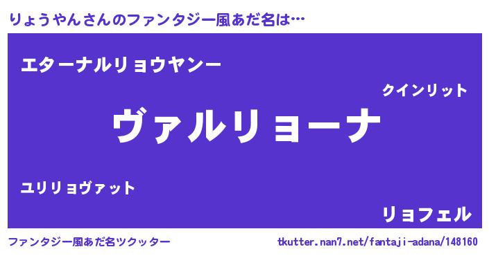 | 男性向けラノベタイトル風あだ名 | 『魔弾の王とりょうやん』 |