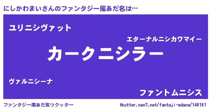 | 肩書あだ名 | 『にしかわまい船長』『にしかわまい少将』 |