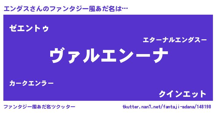 | ヒーロー風カッコイイあだ名 | 『仮面エンダー』『ウルトラ戦士エンダス』 |