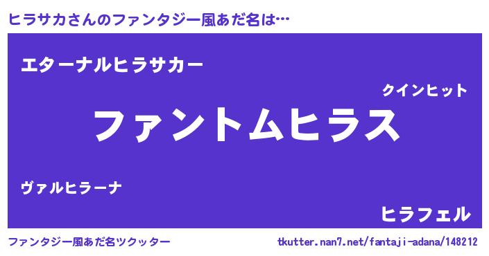 | ヒーロー風カッコイイあだ名 | 『幻影騎士ヒラ』『ウルトラヒラサカマン』 |