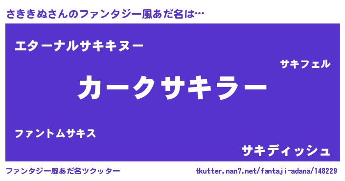 | 男性向けラノベタイトル風あだ名 | 『緋弾のサキキヌ』 |