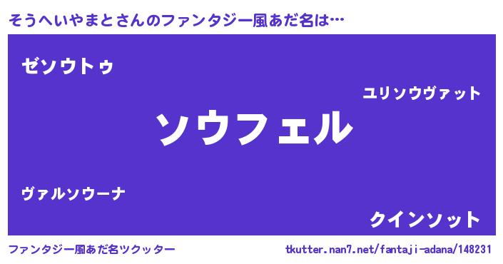 | 男性向けラノベタイトル風あだ名 | 『そうへいやまとの憂鬱』 |