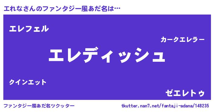 | 女子向けラノベタイトル風あだ名 | 『エれなの契約王妃』『闇のエれな』 |