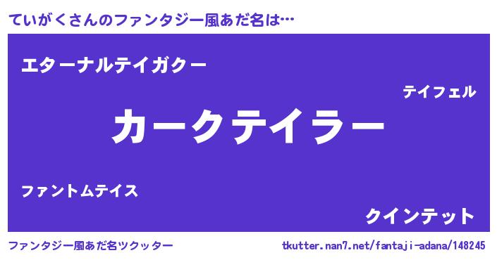 | 男性向けラノベタイトル風あだ名 | 『ていがくに滅ぼされるだけの簡単なお仕事です』 |
