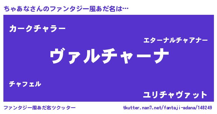 | 男性向けラノベタイトル風あだ名 | 『この素晴らしい世界にちゃあなを!』 |