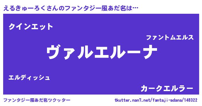 | 男性向けラノベタイトル風あだ名 | 『この素晴らしい世界にえるきゅーろくを!』 |