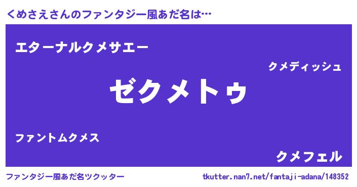 | 意味不明あだ名 | 『自称くめさえ』『くめさえフォーエバー』 |
