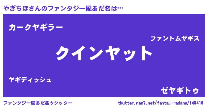 | ヒーロー風カッコイイあだ名 | 『慈愛の使者やぎちほ』『暗黒騎士ヤギ』 |