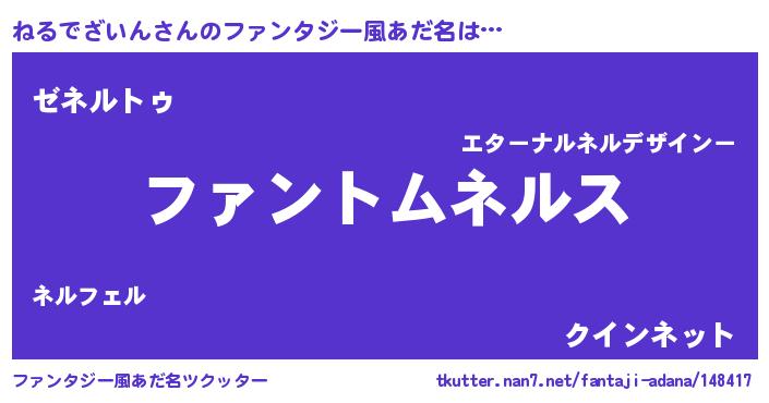 | 意味不明あだ名 | 『とにかく怪しいねるでざいん』 |