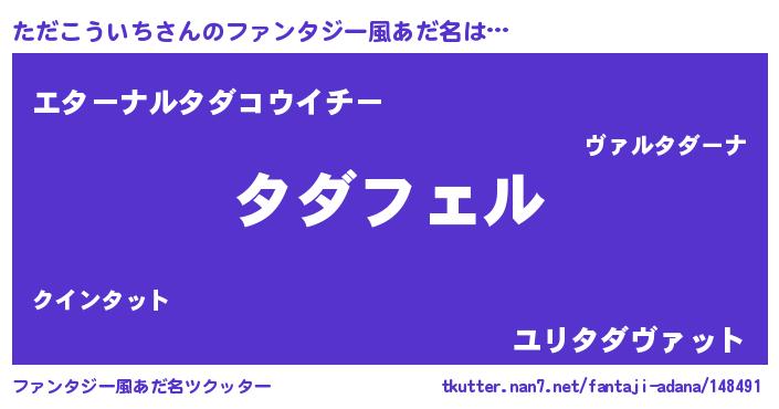 | 男性向けラノベタイトル風あだ名 | 『ただこういちの憂鬱』 |
