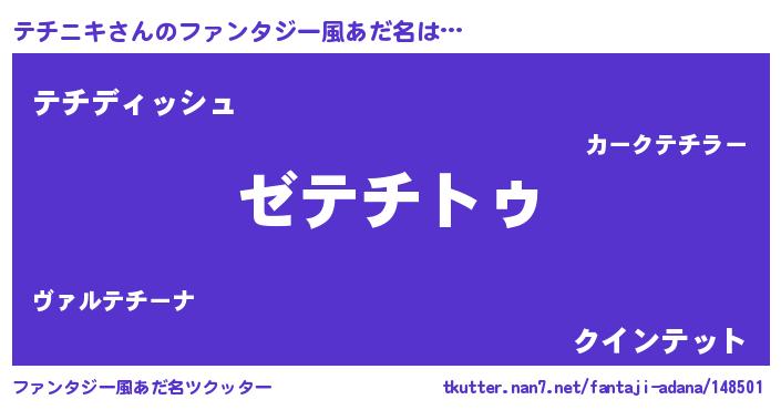 | 意味不明あだ名 | 『自称テチニキ』『永久保存テチニキ』 |