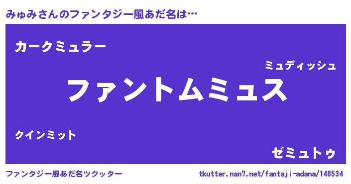 | 女子向けラノベタイトル風あだ名 | 『みゅみの卵を拾いまして』 |