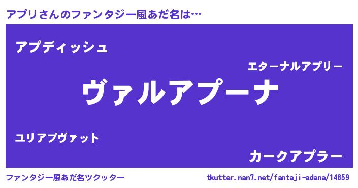 | ポケモン風あだ名 | 『アプゴンZ』『アープイ』『ゼニアプ』 |