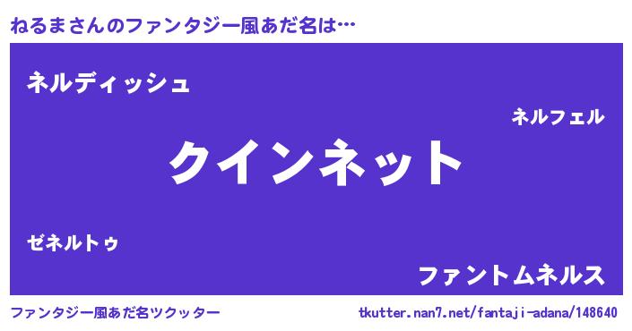 | 女子向けラノベタイトル風あだ名 | 『ねるま恋絵巻』『ねるまの契約王妃』 |