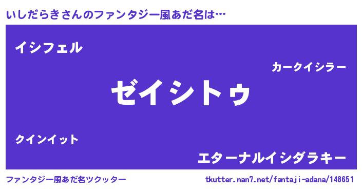 | 男性向けラノベタイトル風あだ名 | 『Re:いしだらきから始める異世界生活』 |