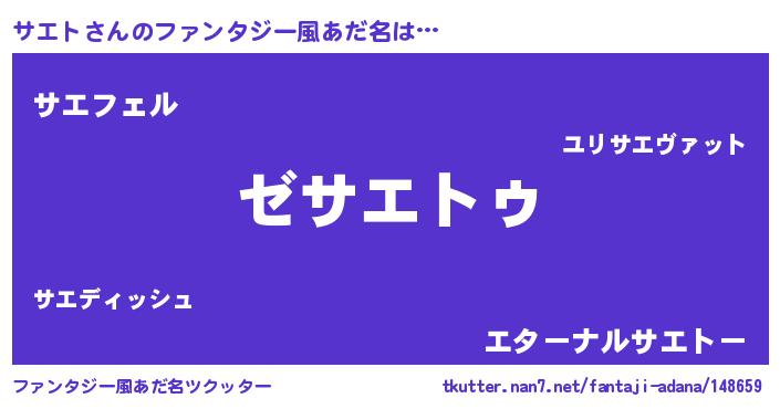 | ヒーロー風カッコイイあだ名 | 『ウルトラ戦士サエト』『スーパーサエト』 |