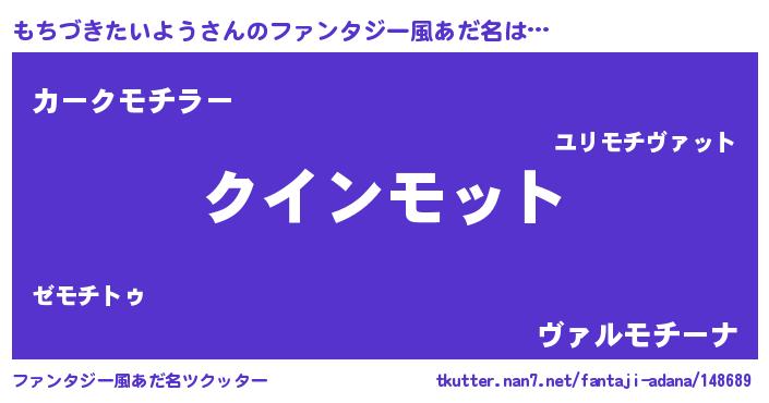 | 男性向けラノベタイトル風あだ名 | 『ノーゲーム・ノーモチヅキタイヨウ』 |