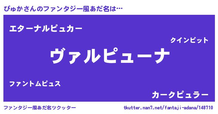 | 男性向けラノベタイトル風あだ名 | 『この素晴らしい世界にぴゅかを!』 |