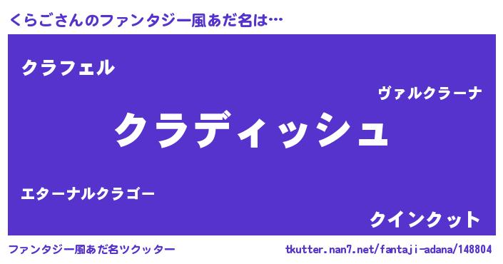 | 男性向けラノベタイトル風あだ名 | 『くらごという概念が存在しない退屈な世界 』 |