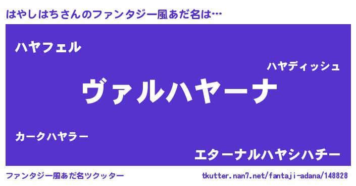 | ヒーロー風カッコイイあだ名 | 『仮面ハヤダー』『スーパーハヤシハチ』 |