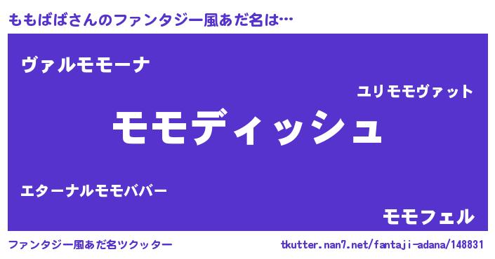 | 意味不明あだ名 | 『永久保存ももばば』『ペロリンももばば』 |