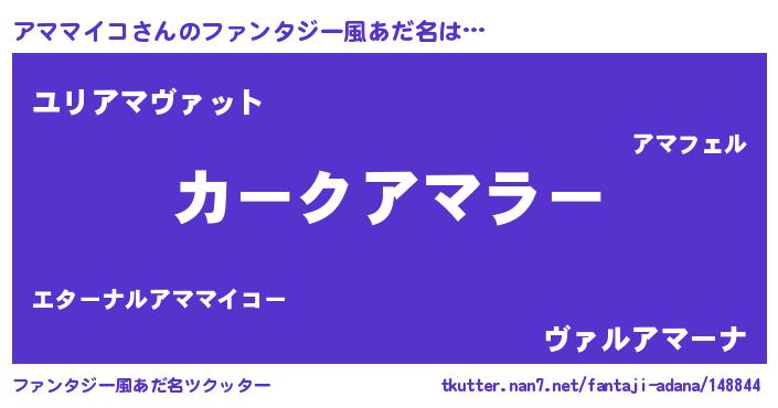 | 男性向けラノベタイトル風あだ名 | 『緋弾のアママイコ』『アママイコの憂鬱』 |