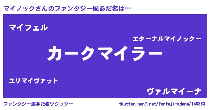 | 男性向けラノベタイトル風あだ名 | 『緋弾のマイノック』『マイノックの憂鬱』 |