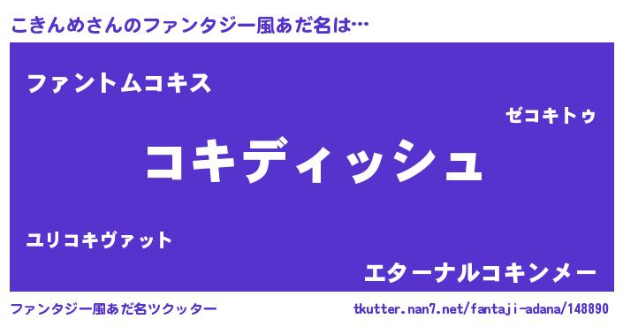 | 意味不明あだ名 | 『永久保存こきんめ』『自称こきんめ』 |