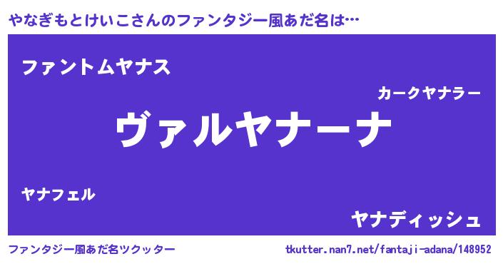 | ヒーロー風カッコイイあだ名 | 『仮面ヤナダー』『銀牙騎士ヤナ』 |