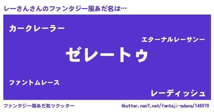 | 男性向けラノベタイトル風あだ名 | 『Re:レーさんから始める異世界生活』 |