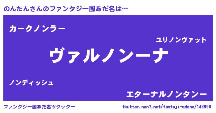 | 女子向けラノベタイトル風あだ名 | 『乙女ゲームの破滅フラグしかない悪役のんたんに転生してしまった…』 |