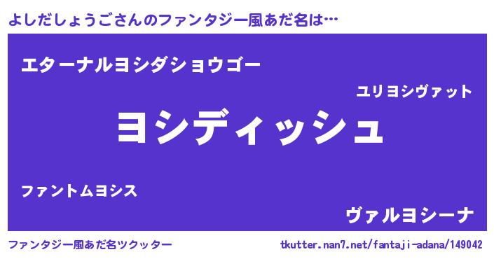 | 男性向けラノベタイトル風あだ名 | 『よしだしょうごという概念が存在しない退屈な世界 』 |