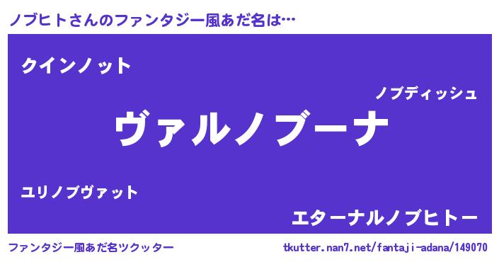 | 男性向けラノベタイトル風あだ名 | 『この素晴らしい世界にノブヒトを!』 |