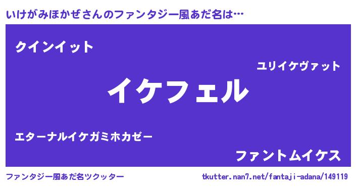 | ヘコむあだ名 | 『いけっふぃ~』『いけを』 |