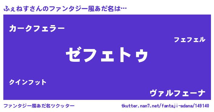 | 意味不明あだ名 | 『自称ふぇねす』『ペロリンふぇねす』 |