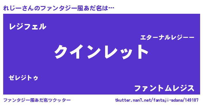 | 男性向けラノベタイトル風あだ名 | 『れじーに滅ぼされるだけの簡単なお仕事です』 |