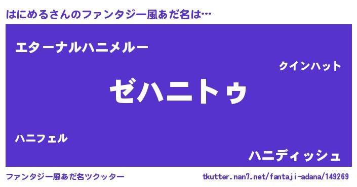 | 意味不明あだ名 | 『自称はにめる』『はにめるフォーエバー』 |