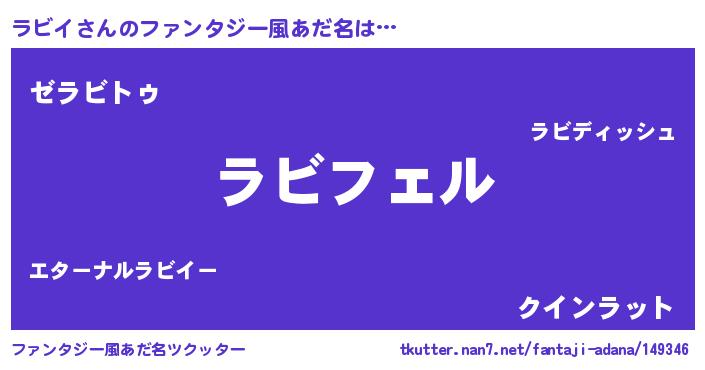 | 男性向けラノベタイトル風あだ名 | 『ラビイの憂鬱』『はたらくラビイさま!』 |