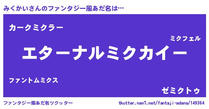 | 女子向けラノベタイトル風あだ名 | 『みくかいの雑貨屋さん』『闇のみくかい』 |