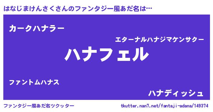 | 男性向けラノベタイトル風あだ名 | 『はなじまけんさくの憂鬱』 |
