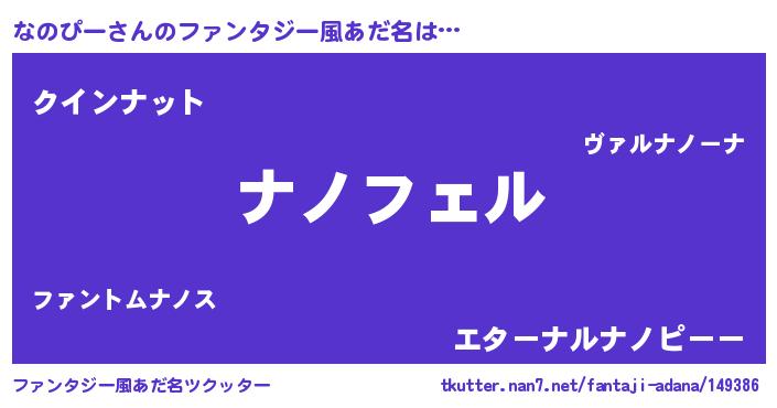 | ヒーロー風カッコイイあだ名 | 『スーパーナノピー』『仮面ナノダー』 |