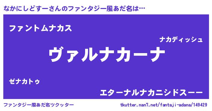 | 男性向けラノベタイトル風あだ名 | 『魔弾の王となかにしどすー』 |