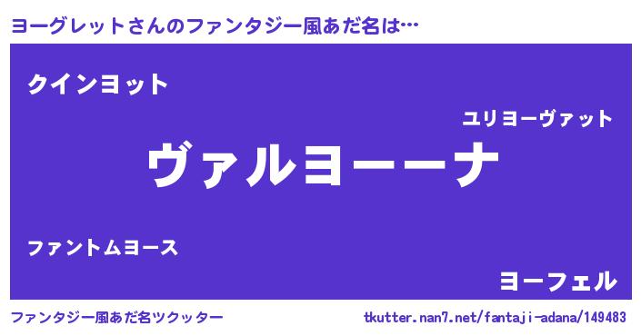 | 意味不明あだ名 | 『住所不定無職ヨーグレット(11歳)』 |