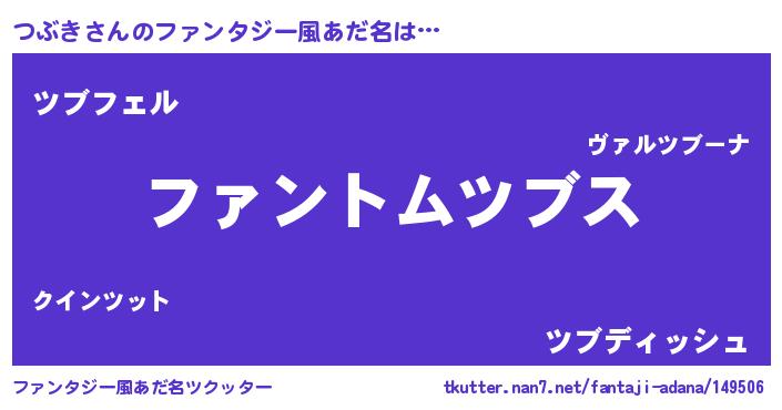 | 欧米人風あだ名 | 『ウサインつぶき』『マイケルつぶき』 |