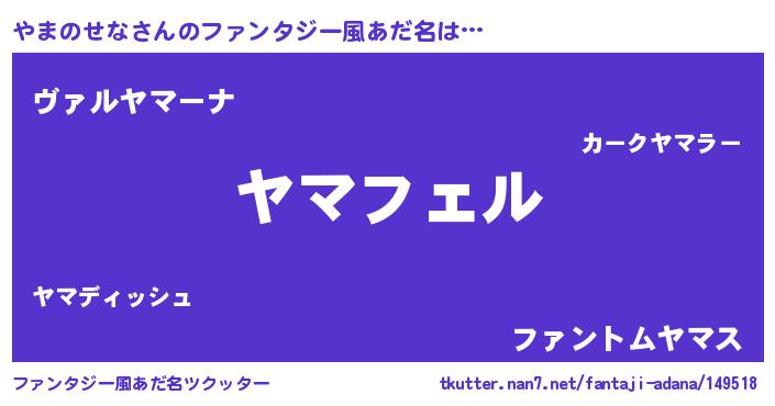 | 男性向けラノベタイトル風あだ名 | 『やまのせなの憂鬱』 |