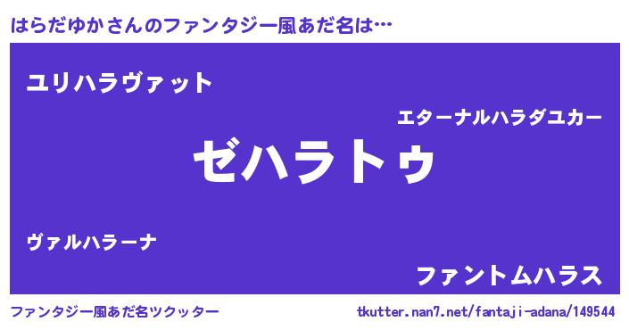 | 男性向けラノベタイトル風あだ名 | 『Re:はらだゆかから始める異世界生活』 |