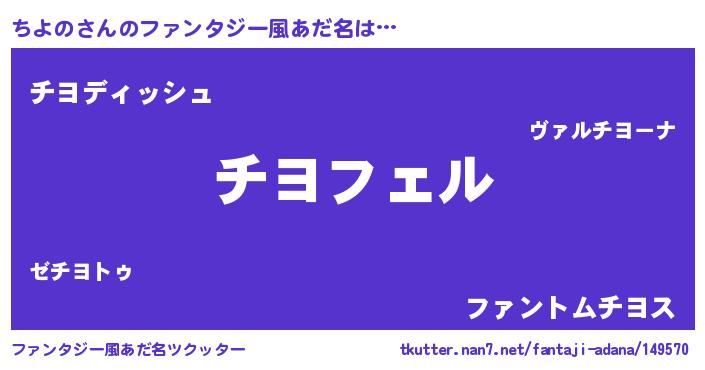 | ヘコむあだ名 | 『ちよもー』『ちよの(苦笑)』『豆乳』 |