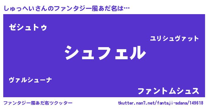 | 意味不明あだ名 | 『ペロリンしゅっへい』『自称しゅっへい』 |