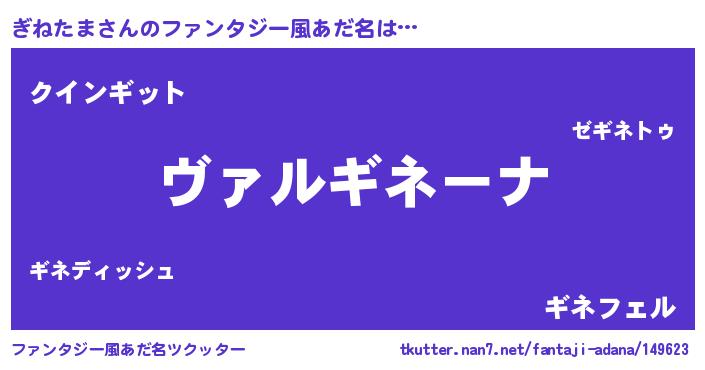 | 男性向けラノベタイトル風あだ名 | 『この素晴らしい世界にぎねたまを!』 |